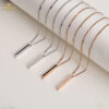The Chains-0047 collection features necklaces with sleek, elongated bar pendants. Available in silver-toned, gold-toned, and rose gold-toned metals, some with a black enamel inlay. Their minimalist design provides a clean and contemporary aesthetic. These pieces serve as subtle adornments, designed for versatile daily wear.