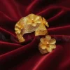 The Dinar Carved Baai Bangle Ring Set is a magnificent and architecturally stunning display of traditional heritage. This is why it is crafted with a brilliant golden finish over its base metal. The massive, wide cuff (baai) features intricate, fine jali (net) openwork and is heavily accented by prominent, sculpted floral medallions. Consequently, this creates a majestic, textural, and culturally rich statement for the hand and wrist.