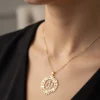 The Calligraphy Customized Name Pendant is a deeply personal and exquisitely designed piece of jewelry. This is why it is crafted with a brilliant golden finish over its base metal. The design features intricate calligraphy, representing a sacred name, elegantly framed within a detailed circular motif that resembles a delicate floral wreath or crown. Consequently, the pendant creates a stunning and meaningful statement piece.