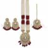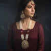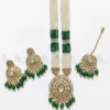 Maranta Malla Set features a multi-layered bead strand design is a masterpiece of royal elegance. This multi-layered necklace is adorned with finely cut Kundan stones and delicate pearls. It offers a complete and traditional look. Perfect for weddings and festive occasions.