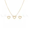 The Hallow Heart Pendant Set is a sleek and charming accessory, perfect for celebrating love and modern style. This is why it is crafted from polished Stainless Steel with a beautiful finish. The set features a delicate, liquid-like chain with a large, hollow, open heart pendant, accompanied by matching open heart stud earrings. Consequently, the design creates a graceful and cohesive minimalist look.