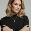 The Tory Cubic Zircon Jewelry Set is a sophisticated and coordinated ensemble, perfect for a subtle statement of enduring quality. This is why the entire set (pendant, earrings, and bracelet) is crafted from durable Stainless Steel with a beautiful golden finish. The unifying design features a striking round medallion with a dark, patterned center, all surrounded by a halo of dazzling, clear Cubic Zirconia stones. Consequently, the set creates a cohesive, recognizable, and highly polished presence.