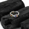 This contemporary ring is the perfect choice for adding a sophisticated and cheerful pop of color to your daily accessories or a fun stacking arrangement. Furthermore, its unique geometric segmentation makes it a standout piece that complements other rings beautifully. Therefore, the Celestial Multi Hued Bar Ring is a must-have for a chic, contemporary, and versatile collection.